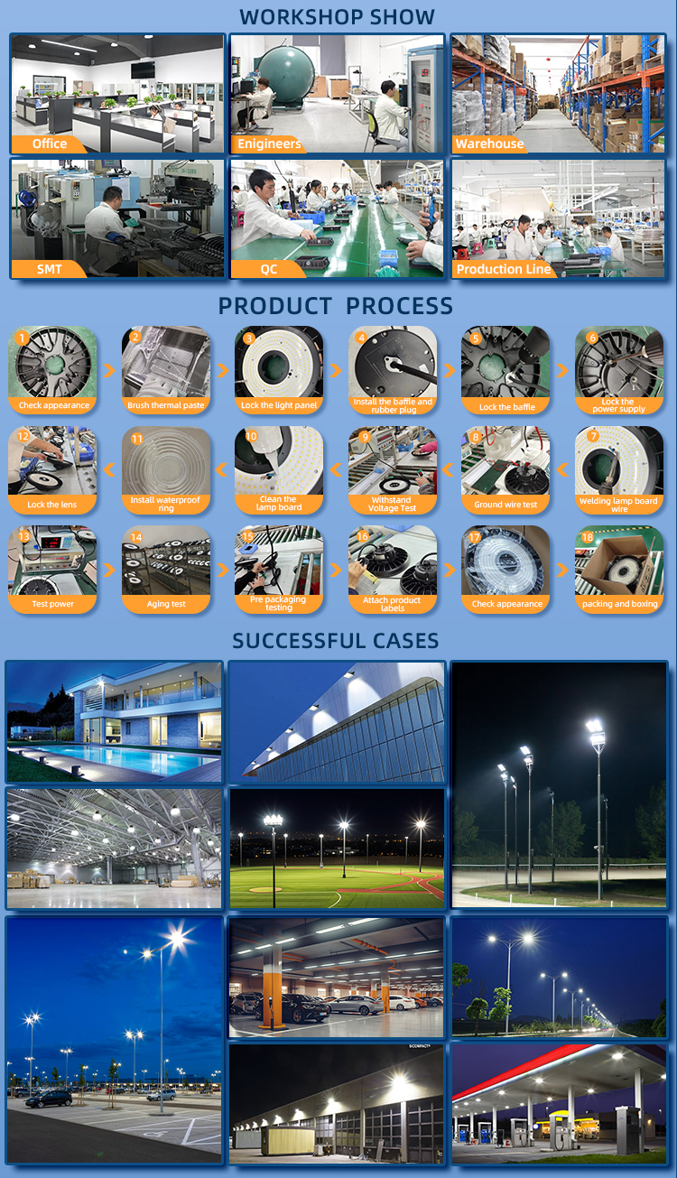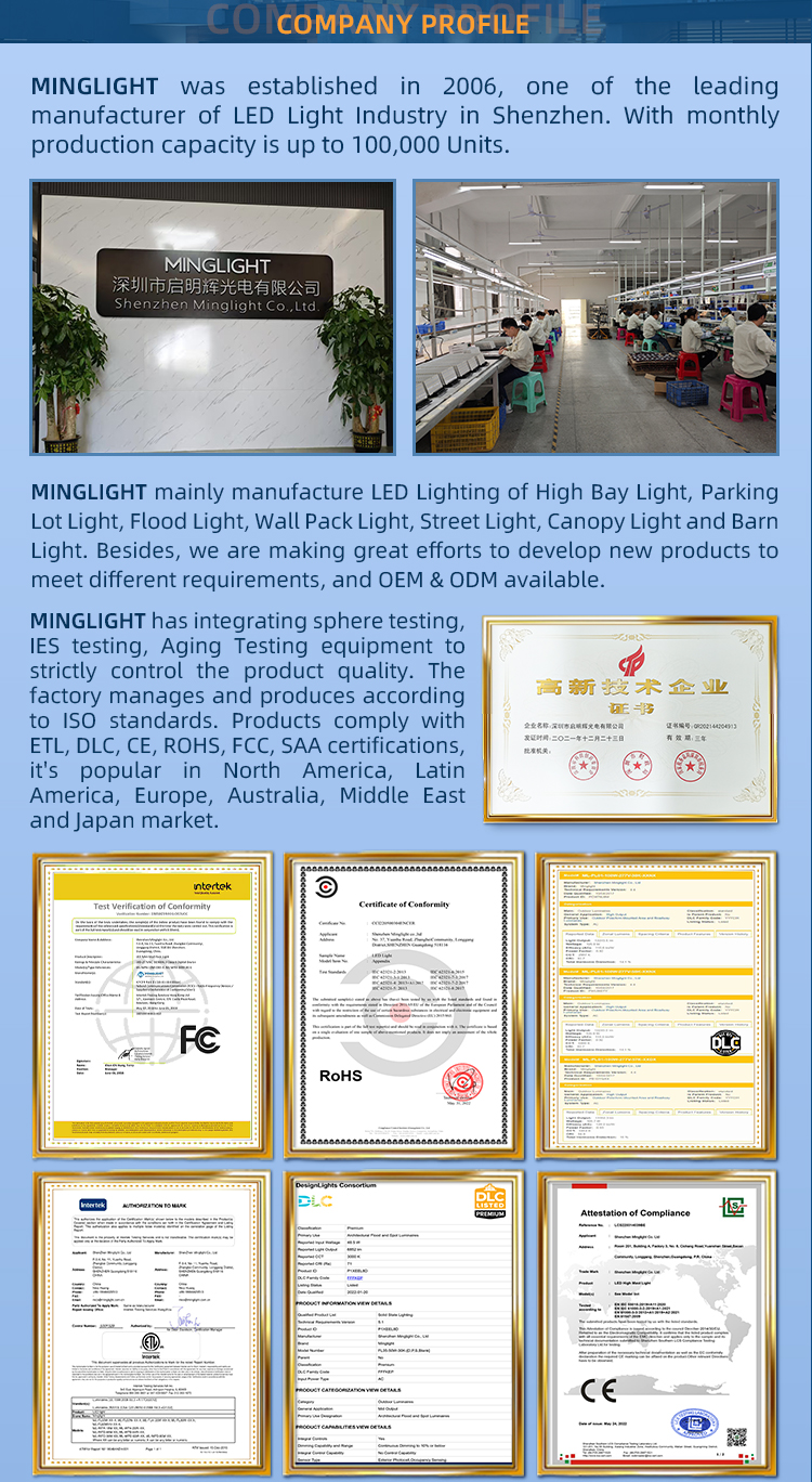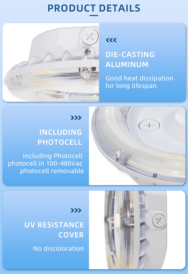 3Power settable CCT: 3000K-4000K-5000K Settable High performance LED fixture 130Lm/W Heavy-duty cast aluminum housing Stable and durable,easy installment and maintenance Surface mounting with junction box Replcing 125W to 400W metal halide DLC ETL Philips LED and 5 years warranty
