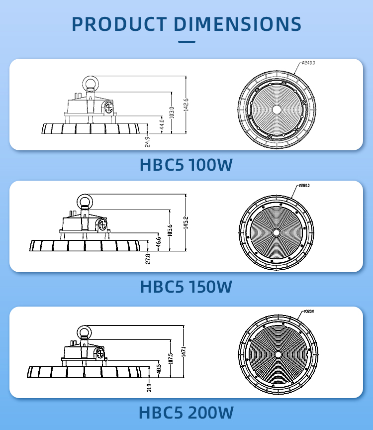 HBC5 100W/150W/200W LED UFO High Bay Light for Factory/Supper Market/Warehouse